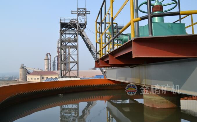 1、濃度計;2、流量計;3、耙子驅(qū)動和提升軸;4、混合攪拌器;5、砂漿和絮凝劑混合筒;6、濃相界面?zhèn)鞲衅?7、可調(diào)速絮凝劑泵;8、絮凝劑貯槽;9、溢流液泵;10、溢流液中間槽;11、濃相界面與底流濃度控制聯(lián)鎖流量計;12、底流氣動隔膜泵l13、耙子;14傾斜板